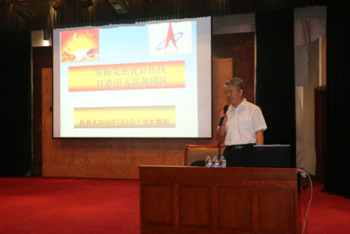 北京青年創業基地導師趙昶水同志概括地講解了中國共產黨建黨95周年的發展歷史和輝煌成就;并從中太的發展歷史與抗震救災和胡錦濤同志視察中太等典型例子講解了中太品牌文化(召之即來,來之能戰,戰之能勝)的內涵;從職業精神、職業能力、職業水平、職業操守到學習力、凝聚力、行動力、創新力的“四個力”,再到落實執行力的十個度,即(態度,喜歡單位,尊重領導,熱愛工作;速度,兩天的事情一天完成;力度,全力以赴;高度,高標準、嚴要求;深度,一深入就具體,一具體就深入;角度,找好工作的切入點;廣度,全面看問題,綜合解決問題;精度,實施精良管理,細節決定成敗;尺度,做人講原則,做事講規則;韌度……)等內容。就如何做好合格黨員,爭當優秀共產黨員,在“兩學一做”學習教育活動中起好模范帶頭作用做了一場精彩的演講。