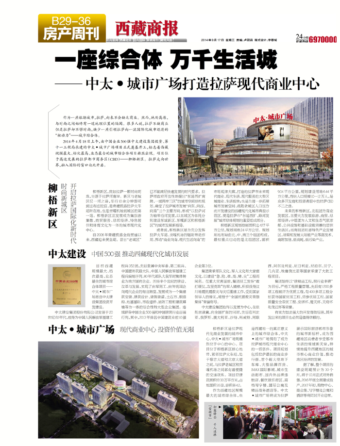 目前西藏規(guī)模最大、檔次最高、業(yè)態(tài)最全的城市綜合體項目——中太·城市廣場是由中太建設集團投資開發(fā)建設。